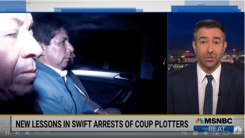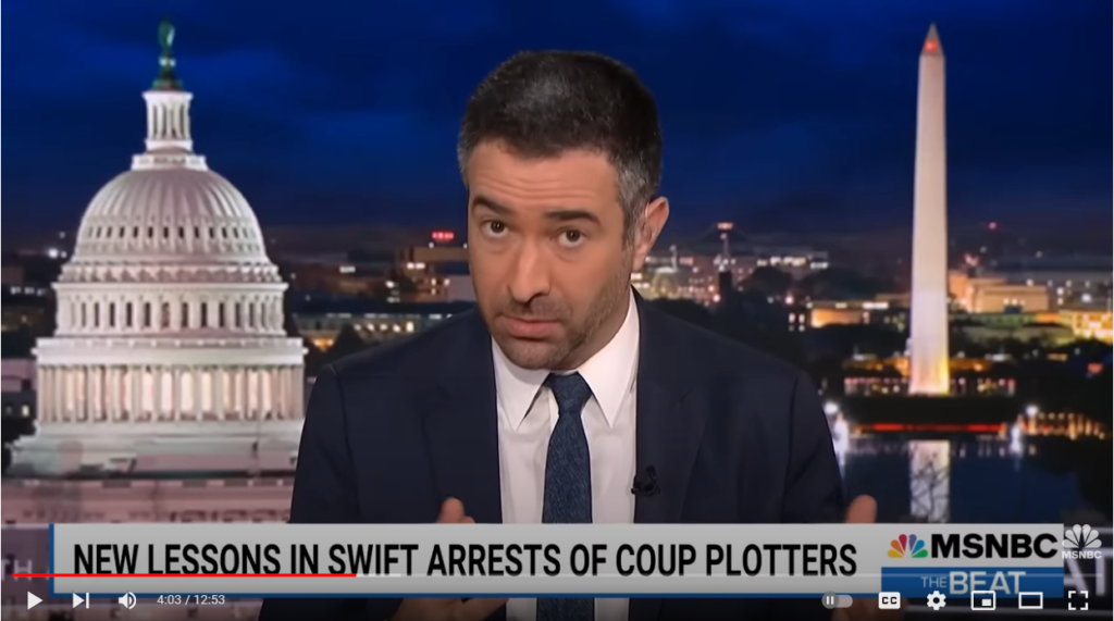 Ari Melber, Donald Trump, Insurrection, Janet Kira LessinCoup Bomb Goes Off: Foreign Arrests Show Peril For Trump by Kiraupdated on December 13, 2022December 13, 2022Leave a Comment on Coup Bomb Goes Off: Foreign Arrests Show Peril For Trump Share this: Click to share on Facebook (Opens in new window) Facebook Click to share on X (Opens in new window) X Like this:Like Loading... Related