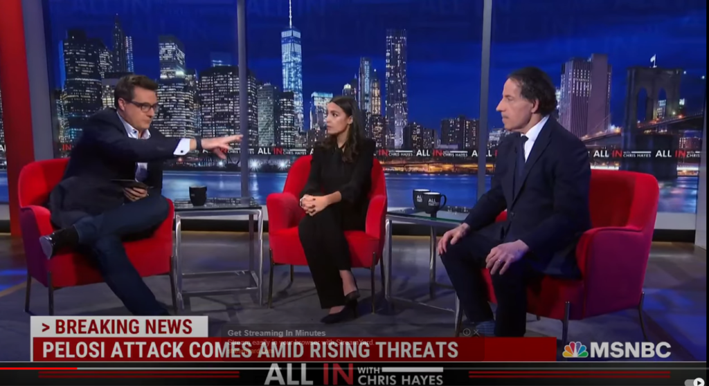 Alexandria Ocasio-Cortez (AOC), Chris Hayes, Jamie RaskinAOC And Raskin On Stakes Of Midterms: We Are ‘Facing An Environment Of Fascism’ by Kiraupdated on October 29, 2022October 29, 2022Leave a Comment on AOC And Raskin On Stakes Of Midterms: We Are ‘Facing An Environment Of Fascism’ Share this: Click to share on Facebook (Opens in new window) Facebook Click to share on X (Opens in new window) X Like this:Like Loading... Related