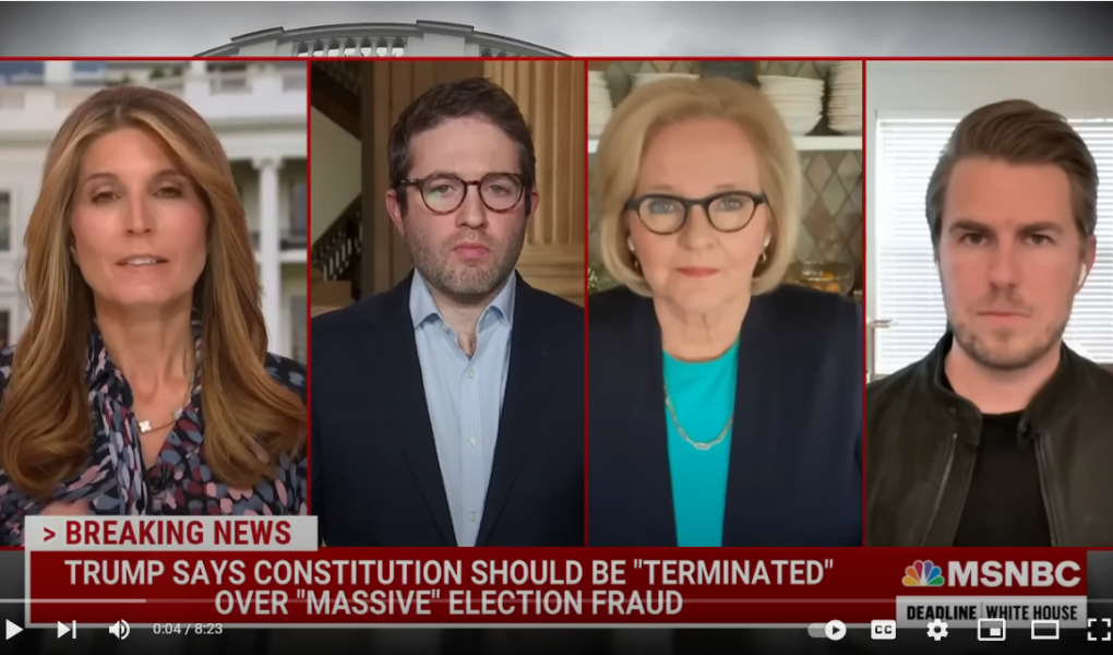 Claire McCaskill‘The Biggest Lie Trump Told Was His Oath Of Office’ Says Claire McCaskill by Kiraupdated on December 6, 2022December 6, 2022Leave a Comment on ‘The Biggest Lie Trump Told Was His Oath Of Office’ Says Claire McCaskill Former Senator Claire McCaskill and co-founder of Punchbowl News Jake Sherman react to the former president’s call for the “termination” of the Constitution. Share this: Click to share on Facebook (Opens in new window) Facebook Click to share on X (Opens in new window) X Like this:Like Loading... Related