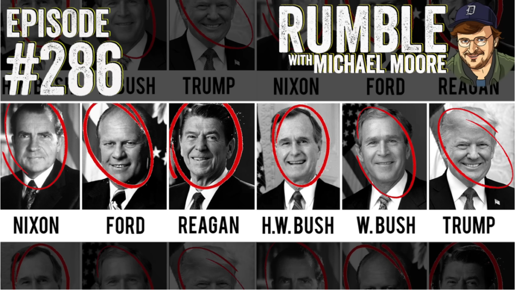 You know the feeling when you casually come across a news article that unexpectedly, yet utterly, blows your mind? When you find yourself looking around with your jaw agape, but nobody else seems to be paying attention? That happened to Michael last week — not once but twice. On this week’s episode of Rumble, Michael Moore shares the articles that left him riled and pondering — is it possible that every Republican president since Ike has had treason in their heart?