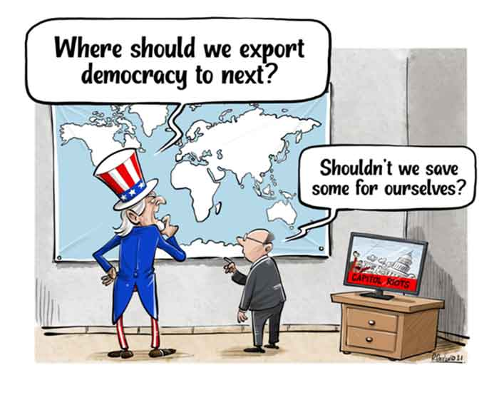 Is that proof, as many on the hard right argue, that the “experiment” of democracy is unnatural and therefore doomed to failure? Should we let Trump overthrow democracy and establish authoritarian rule here in the US? Has the “American experiment” run its course?